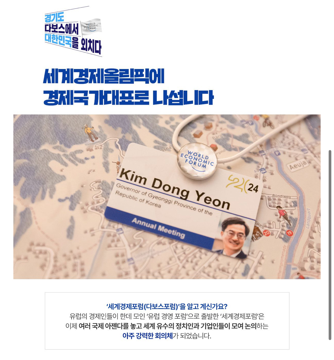 안녕하세요. 이번에 경기도에서 #세계경제포럼 인 #다보스포럼 에 한국경제국가대표로 출전한다고 합니다.
