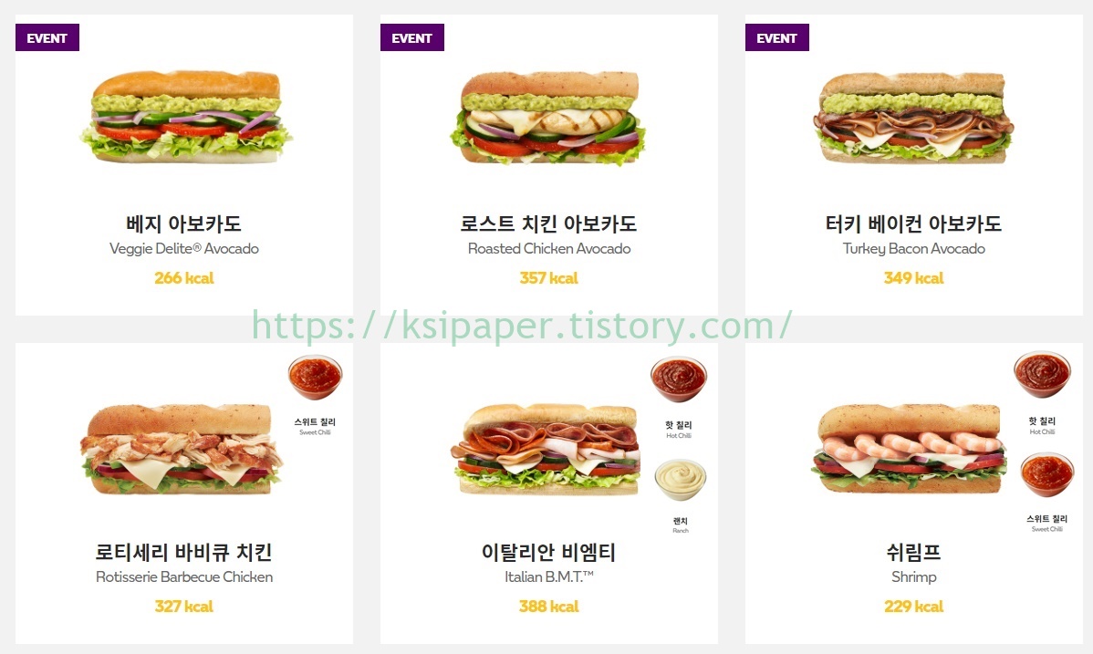 -K바비큐 : 써브웨이 최초의 코리안 스타일 샌드위치! 마늘, 간장 그리고 은은한 불맛까지! (올리브 오일, 후추 추천)