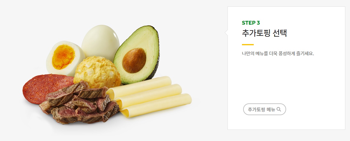 대부분 햄, 비프, 터키, 치즈, 에그 마요, 아보카도 정도 한스쿱씩 추가하시곤 합니다.
