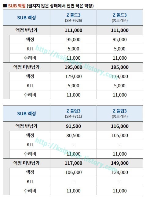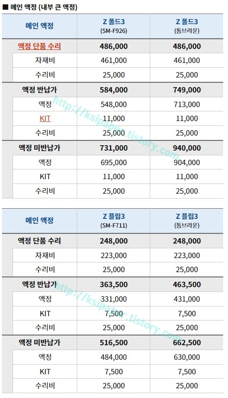 갤럭시 Z플립3 Z폴드3 액정 수리 교체비용