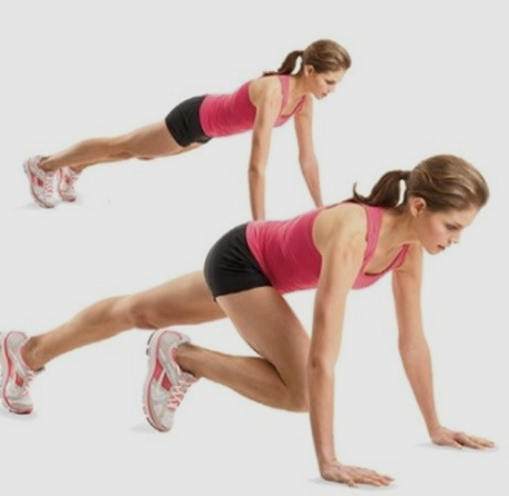 마지막으로 마운틴 클라이머이라는 복근운동을 해보세요. 디딤 대위에 팔 굽혀 펴기처럼 팔을쭉편상태에서 양쪽 다리를 가슴 쪽으로 번갈아가면서 올렸다가 쭉 펴고 올렸다가 쭉 펴고 하는 운동법입니다.