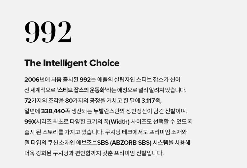 우선 뉴발란스 992는 스티브잡스가 많이 신고 나오면서 유명해진 신발인데요.