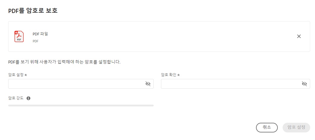 여기다가 여러분의 PDF를 보호할 비밀번호(암호)를 넣어주시면 되는데요.
