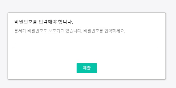제가 만든 PDF 파일을 오픈하니 위에처럼 바로 비밀번호를 입력해야 합니다. 라고 팝업이 떳습니다.