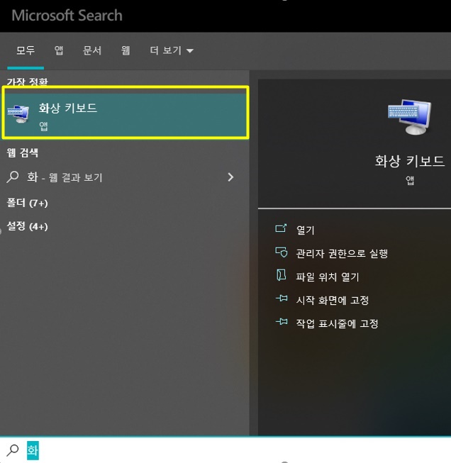 윈도우10 가상 키보드 화상 키보드 사용방법