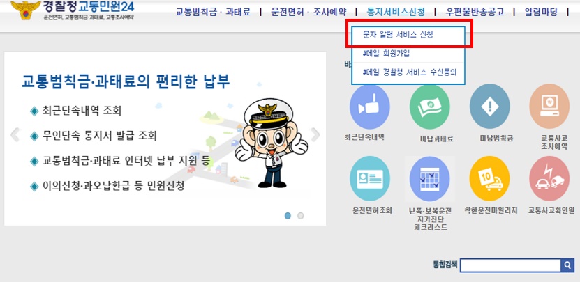 그래서 내가 과속했을 경우 무인단속카메라 신호위반에 찍혔는지 안찍혔는지 불안해 하지 않고 바로 알수 있도록 미리 문자 알림 서비스를 신청해보려고 합니다.