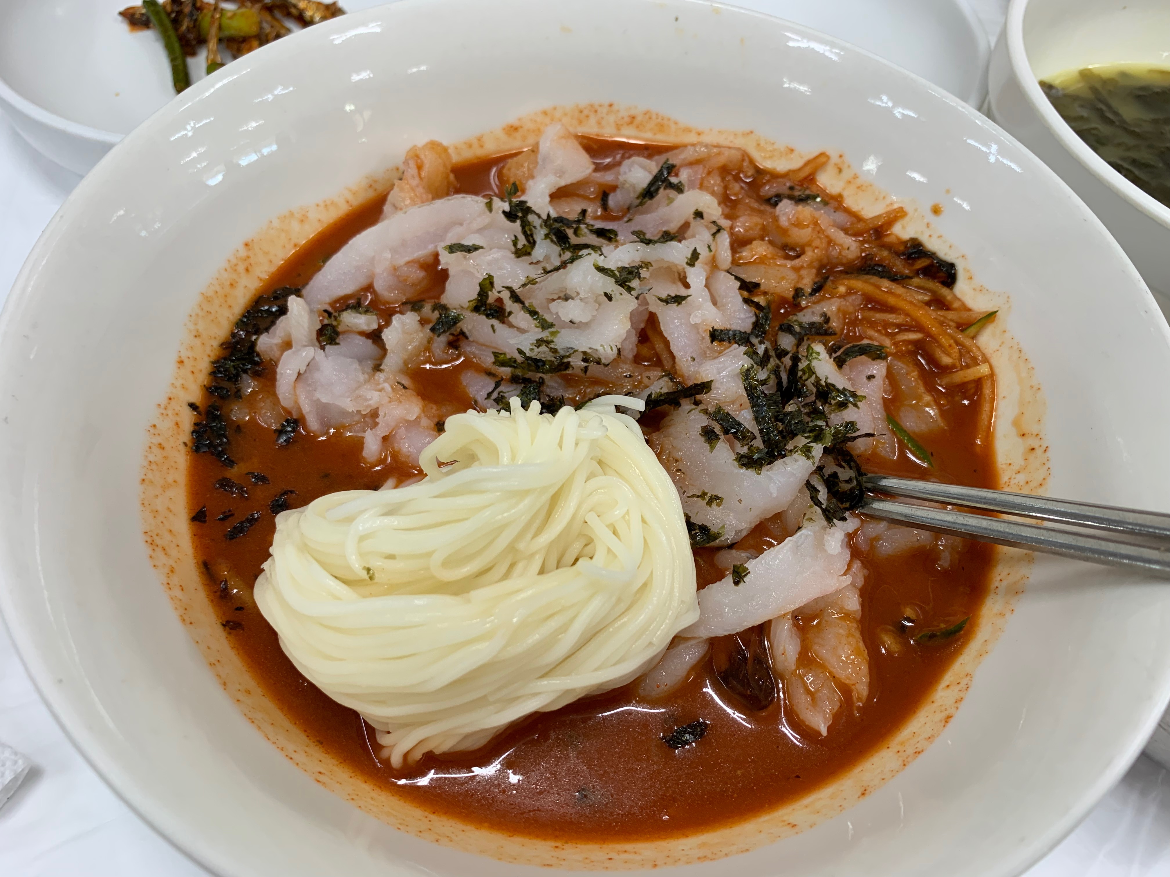 장안횟집에 숨은 히든카드인 우럭미역국입니다. 제 인생미역국인 정도로 맛이 환상인 미역국인데요. 우럭이 들어가서 그런지 국물맛이 찐하고 맛있습니다.