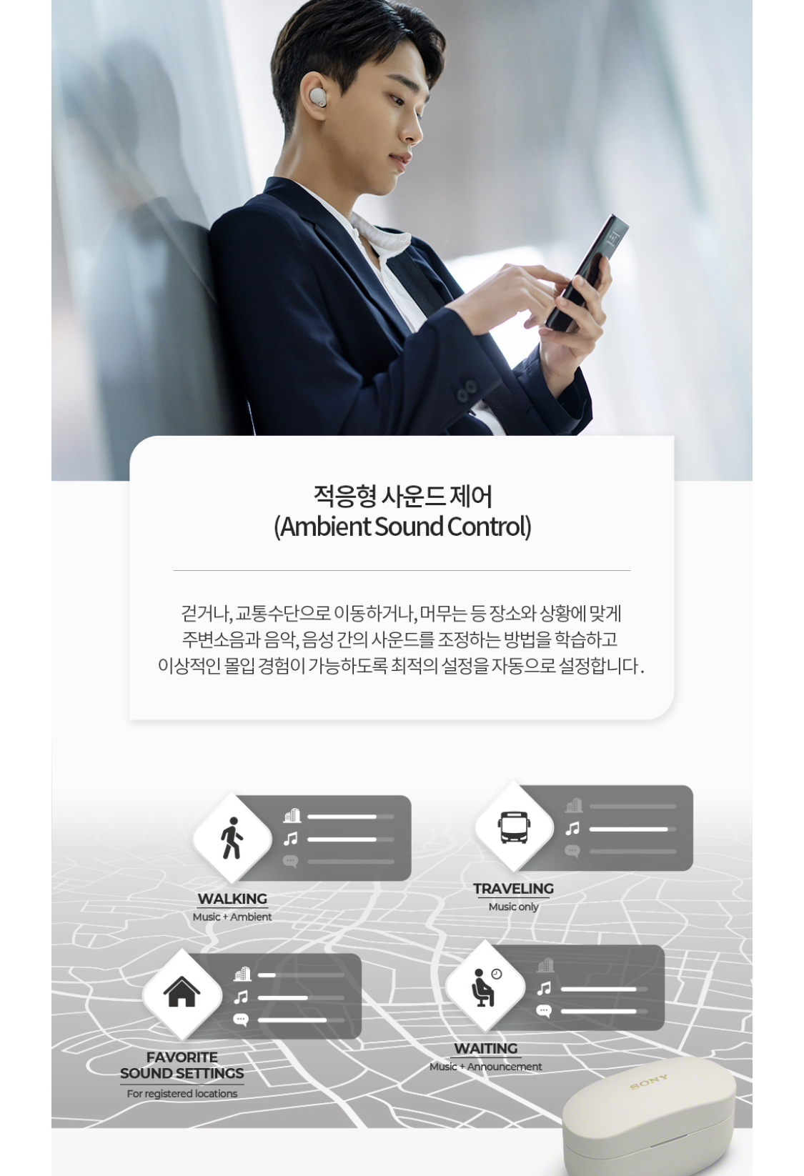 소니 노이즈캔슬링 기술이 정말 좋긴 하더라구요. 이어폰을 끼고 말할때는 자연스럽게 소리가 잘 들리게 되고 걸어다닐때도 차소리나 주변소리가 자연스럽게 들리도록 변경됩니다.