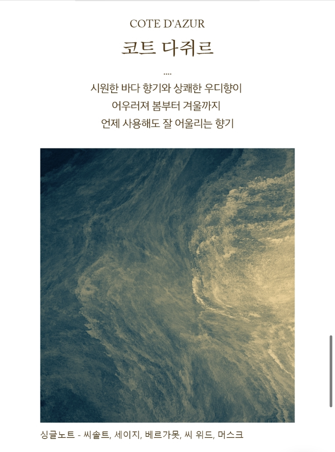코트다쥐르는 캐주얼하면서도 좀 중성적인 향인듯해서 커플향수로 쓰기도 좋을거 같더라구여.