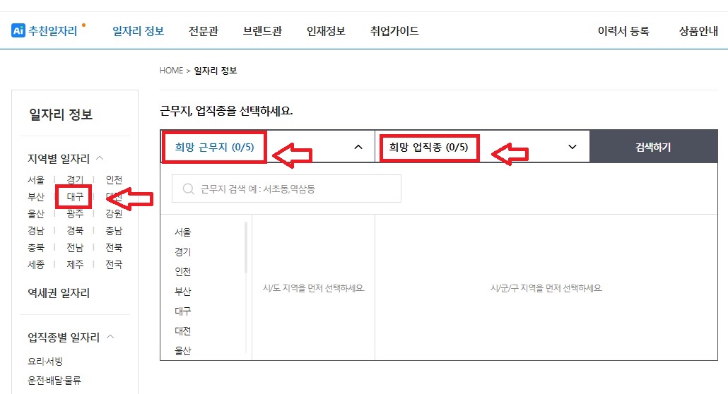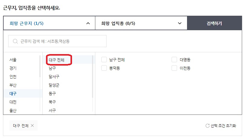 저는 "대구전체"로 해서 일자리를 찾아보겠습니다.