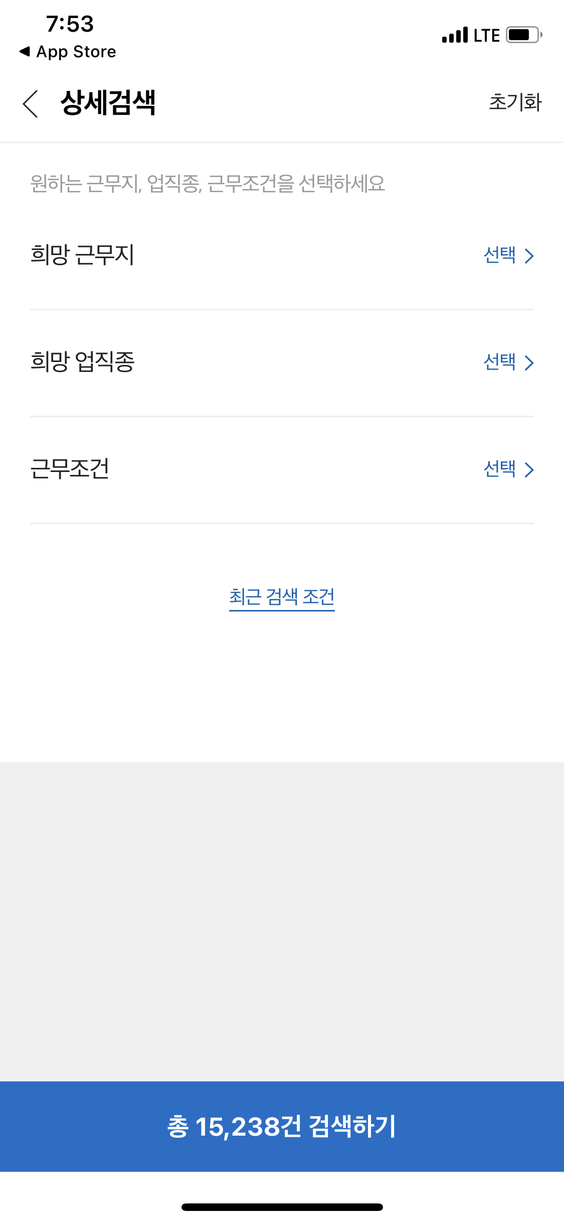그러면 어떻게 해야할까요? 위에 잘 보시면 화면에 “상세조건 추가후 일자리 확인하기” 라는게 보이실텐데요. 저것을 눌러줍니다.