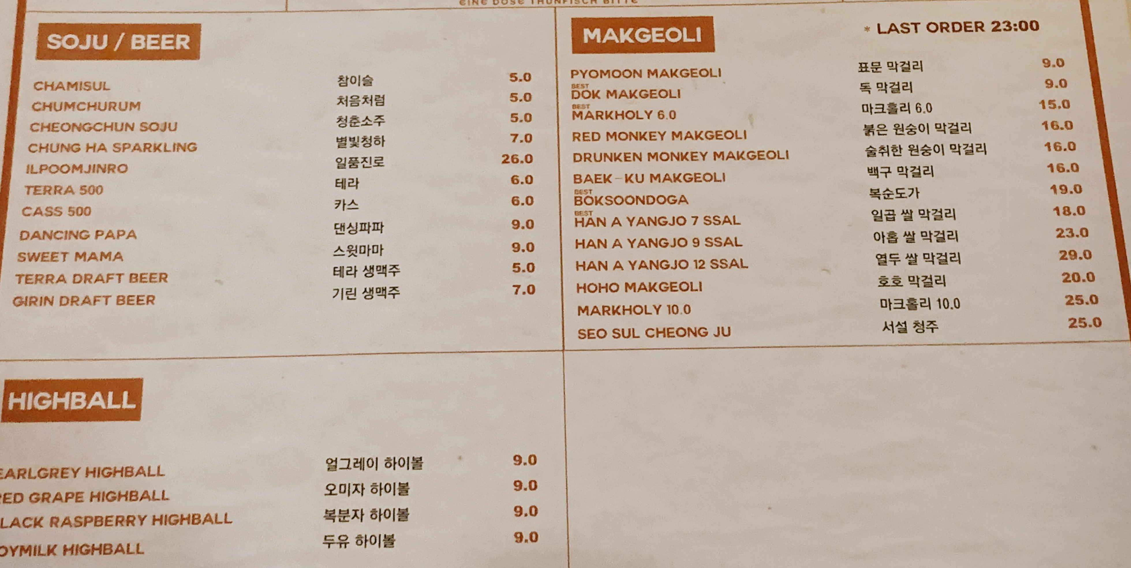 요즘 트렌드인 하이볼도 있는데요. 하이볼에는 얼그레이 하이볼, 오미자 하이볼, 복분자 하이볼, 두유하이볼 정도를 판매하고 있습니다.