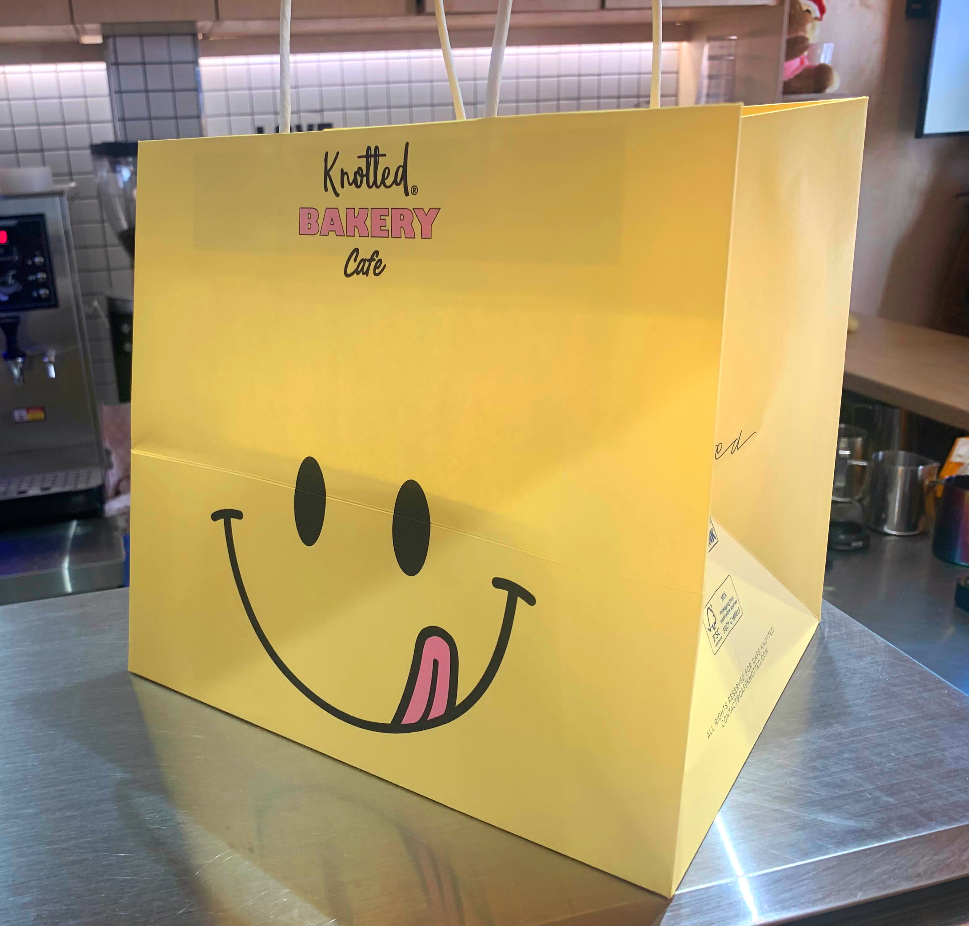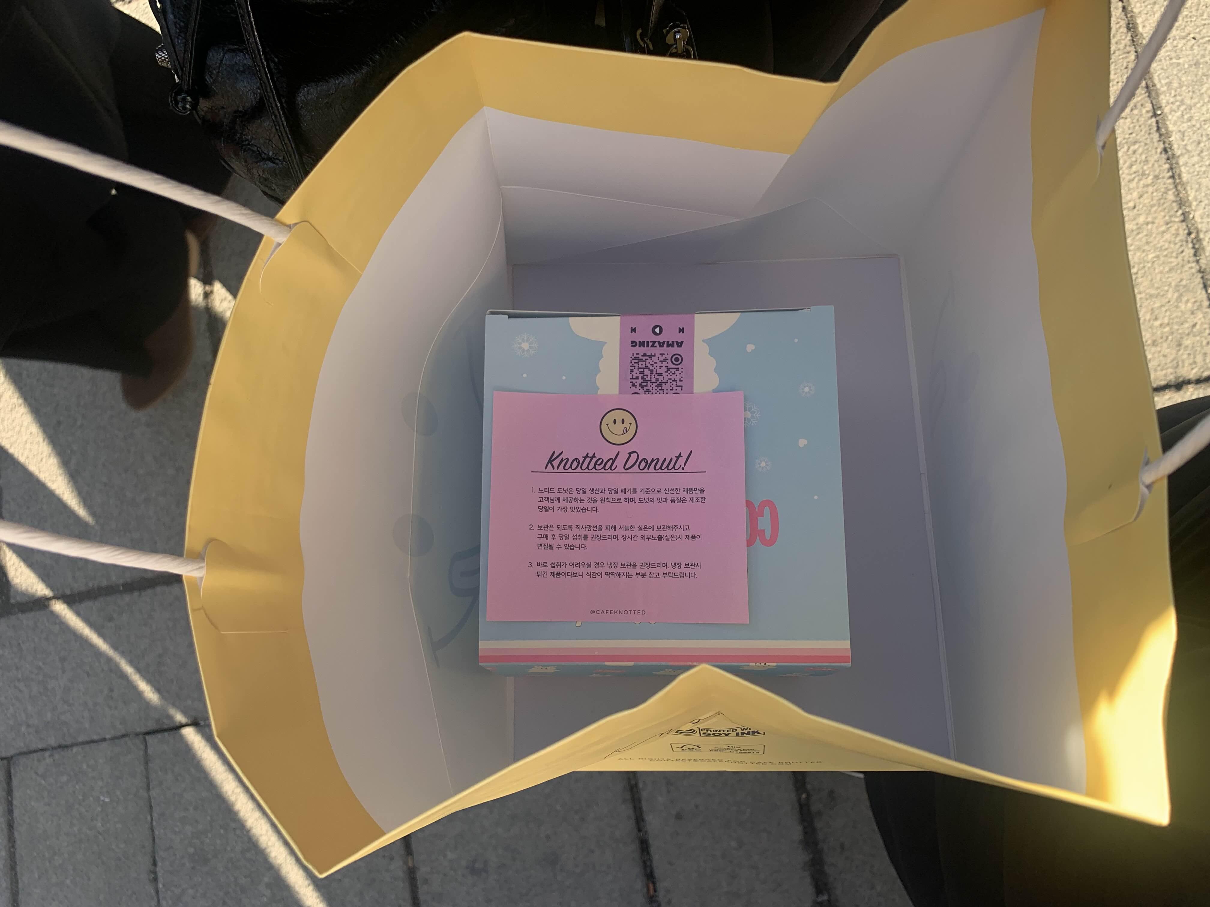 노티드도넛 쇼핑백도 귀염귀염합니다. 스마일 그림이 그려져 있네요.