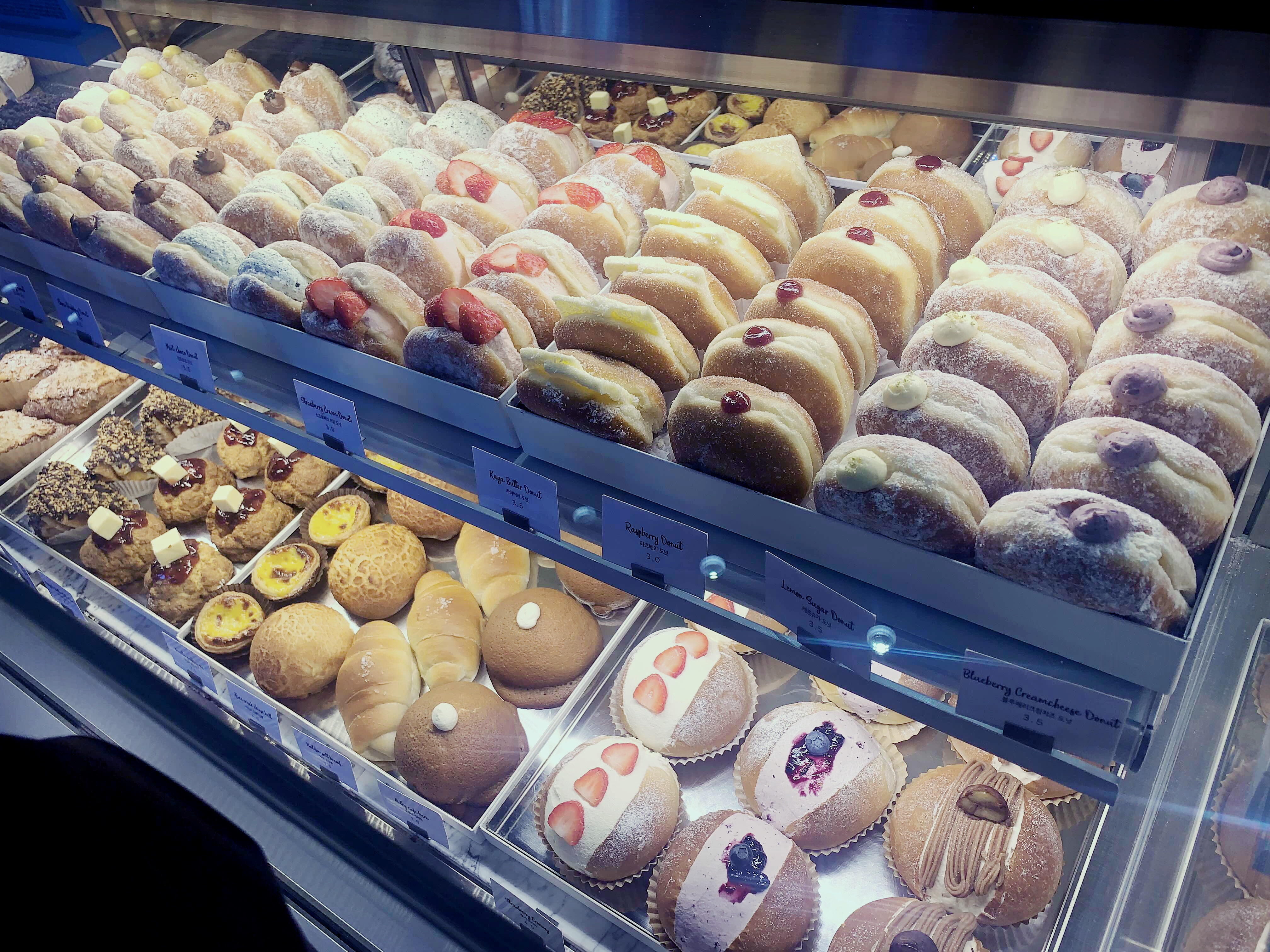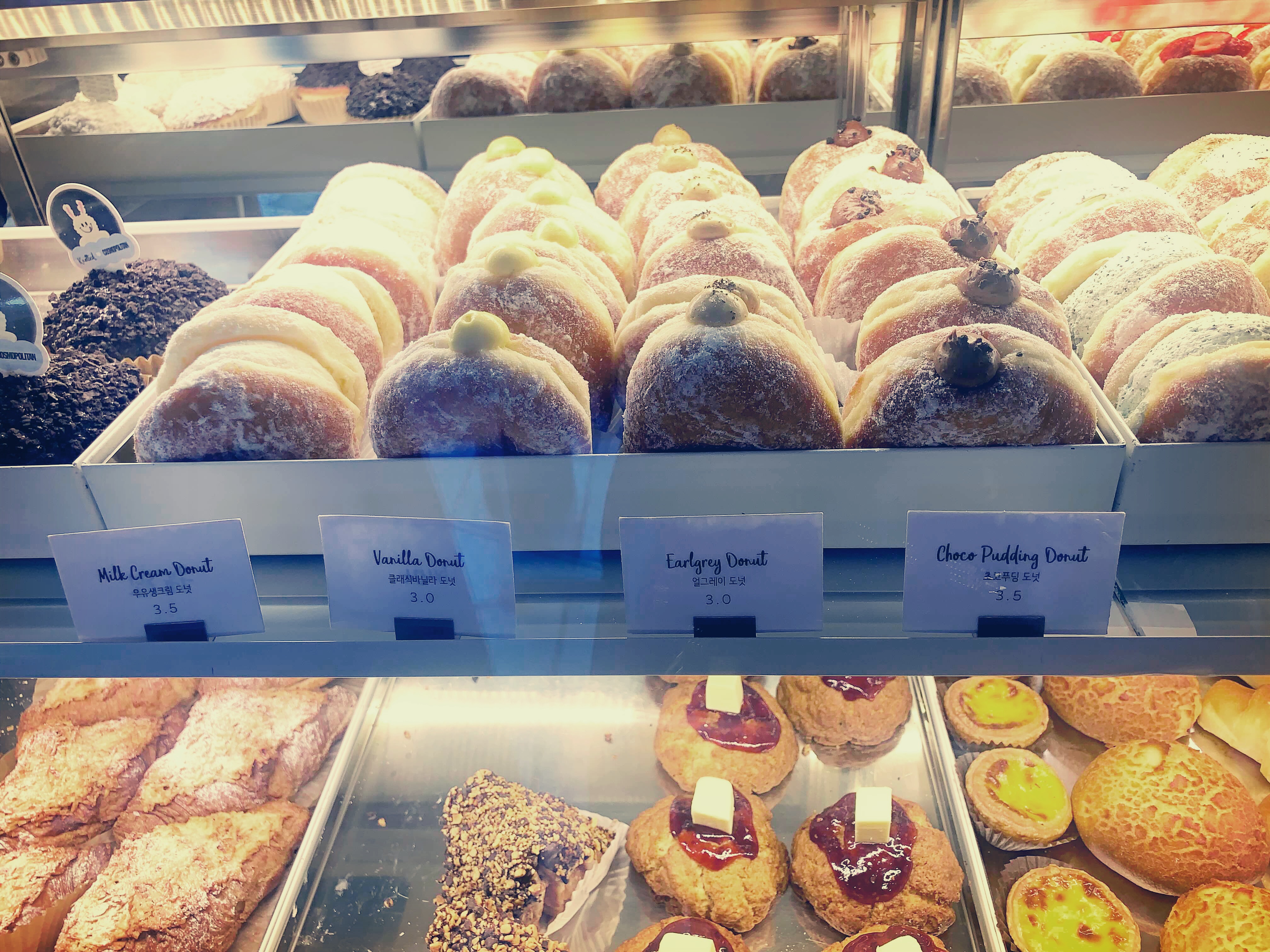 다양한 맛의 도넛들이 있습니다. 대부분 기본 도넛빵안쪽에 크림을 넣는 스타일의 도넛들입니다. 던킨도너츠랑은 좀 스타일이 다르죠.
