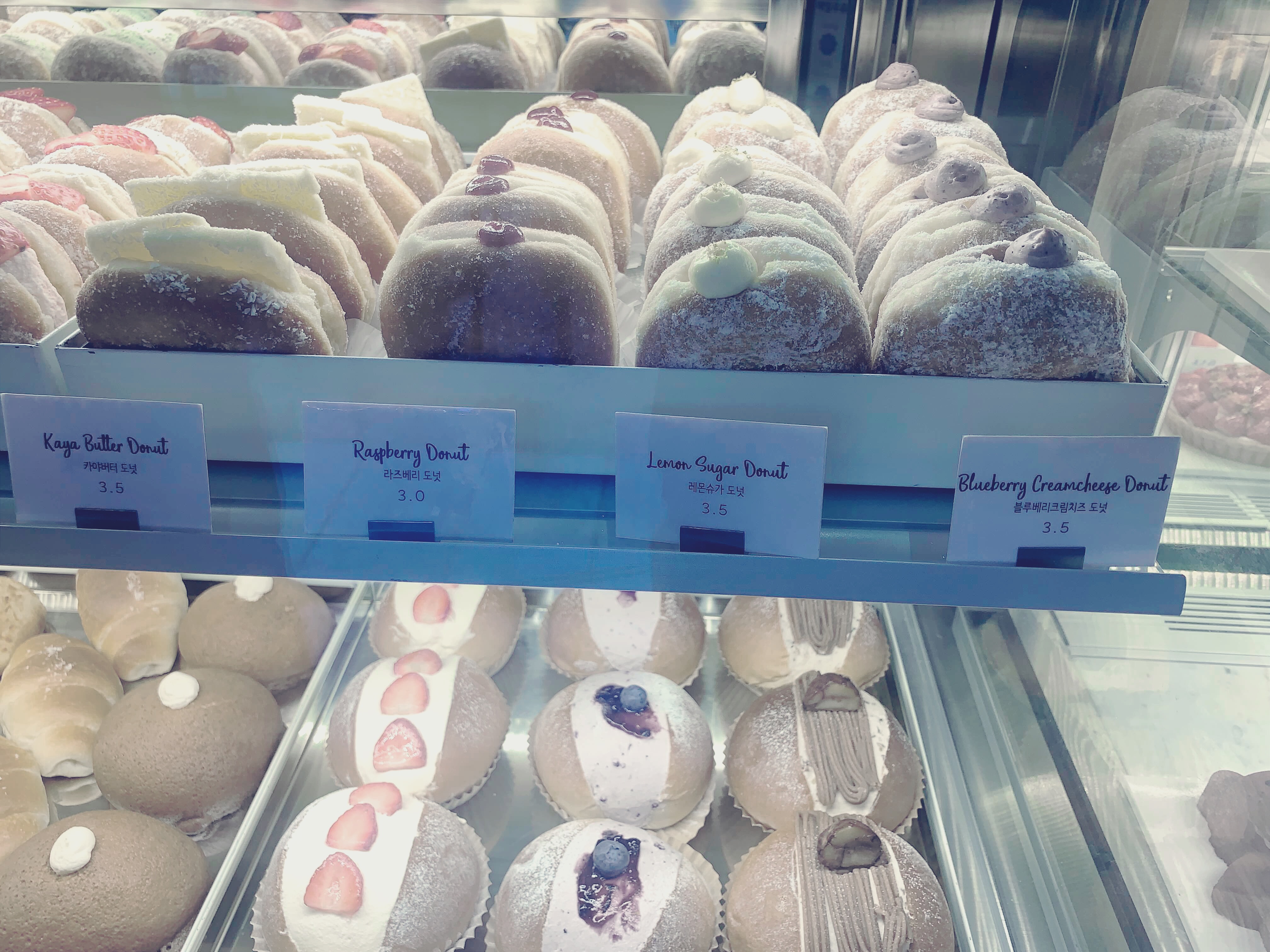 가격이 조금 높은건 크림위에 딸기나 블루베리가 올라간 도넛이 1000원정도 더 비싸더라구요.
