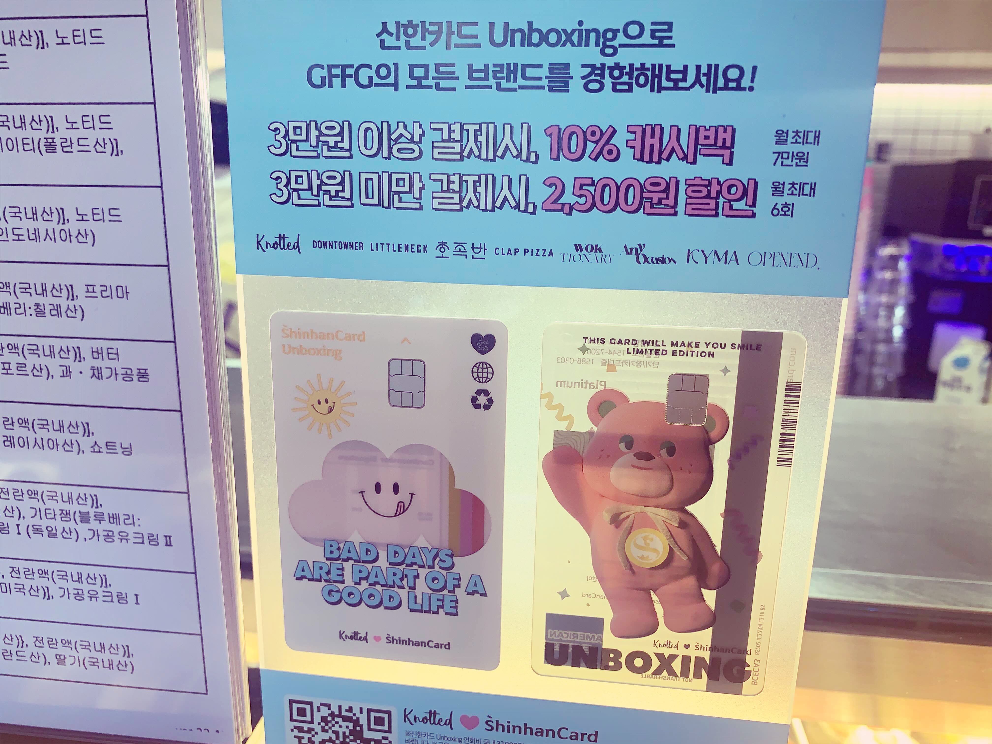 노티드도넛을 자주 드시는 분들은 신한카드에서 노티드랑 연결된 카드를 만드시고 사용하시면 할이나 캐시백도 되니 알고계시면 도움이 되실거 같네요.