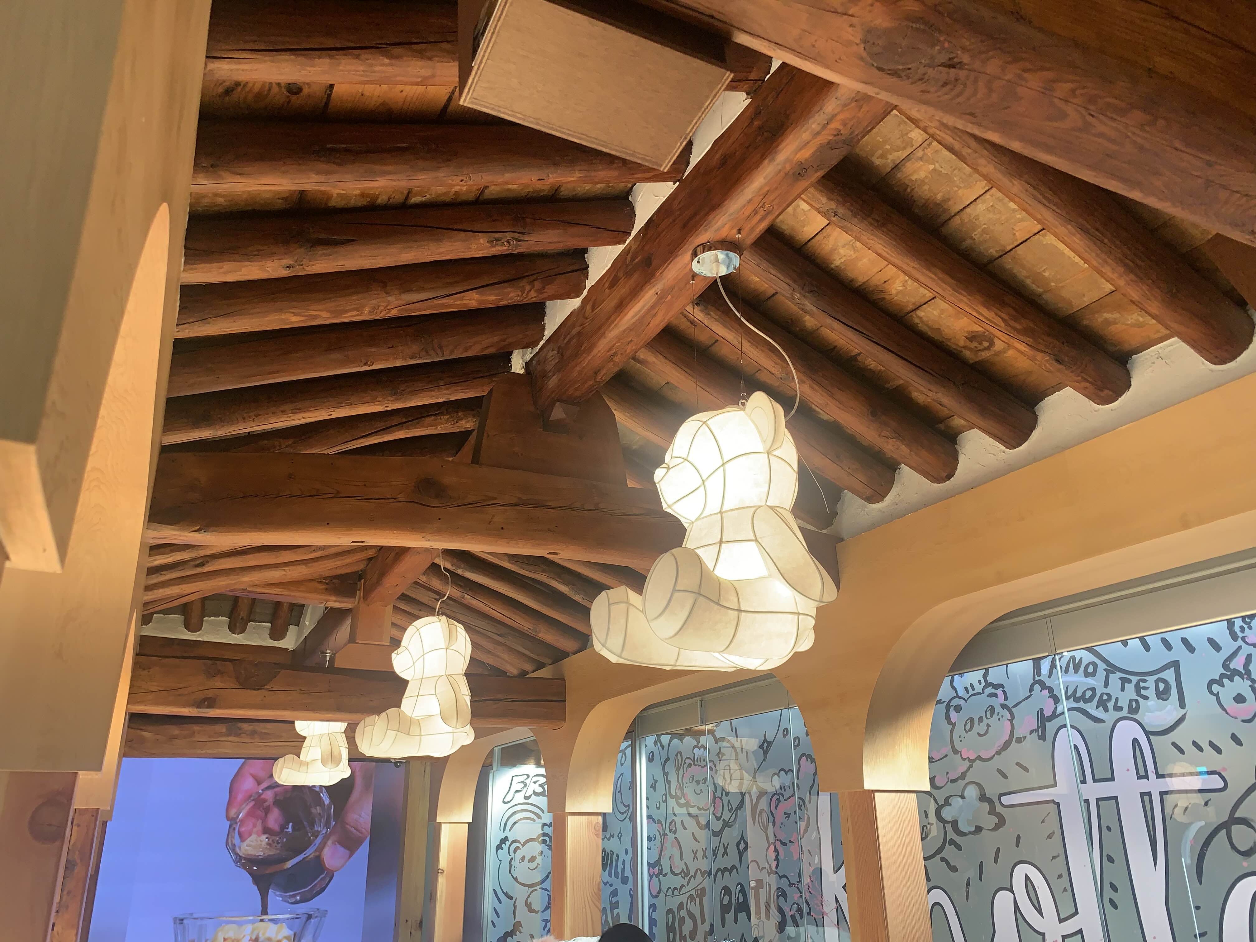 내부 천정에는 노티드도넛에 상징인 곰돌이 모양의 전등도 달려있어서 귀엽더라구요.