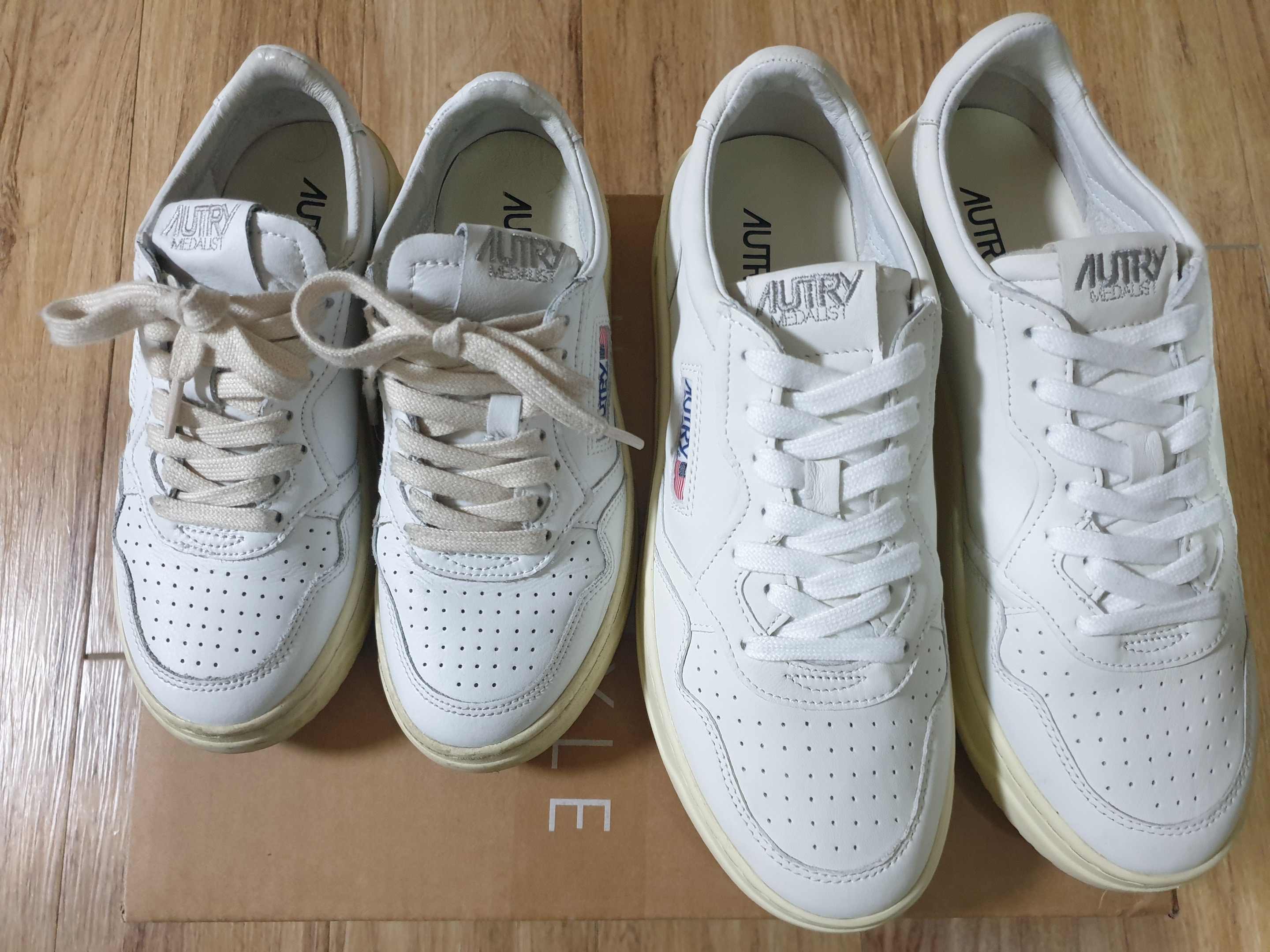 기존에 구매한 오트리 메달리스트 소가죽 여성 제품과 비교해보았습니다. 여성제품은 220사이즈구요. 제껀 280 사이즈 입니다. 차이가 많이 나긴하져?