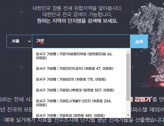 그럼 어떤형식으로 사이트가 구성이 되어있고 깡통전세 감별을 하기위한 사용법에 대해 알아보겠습니다.