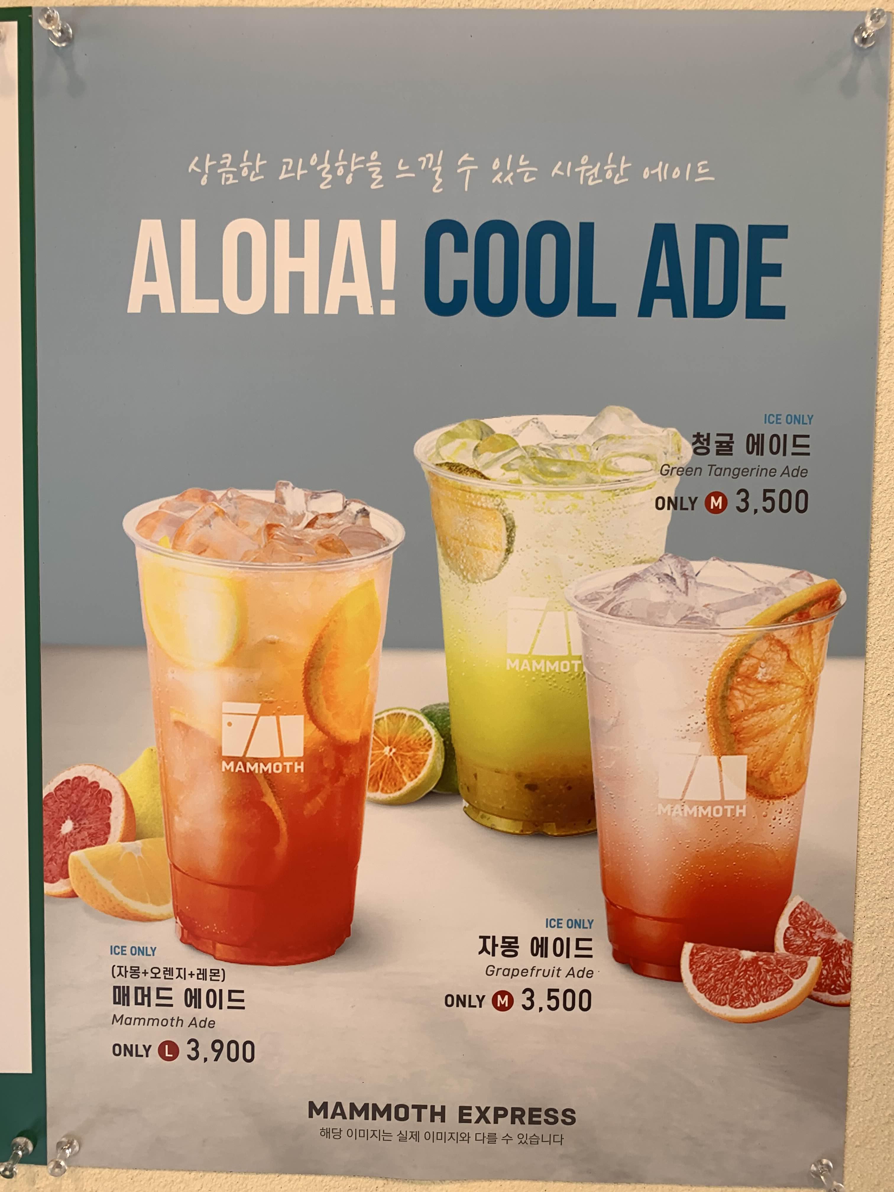 제가 오늘 구매해본 메머드에이드랑 청귤에이 자몽에이드입니다. 라지크긴데 엄청커요.