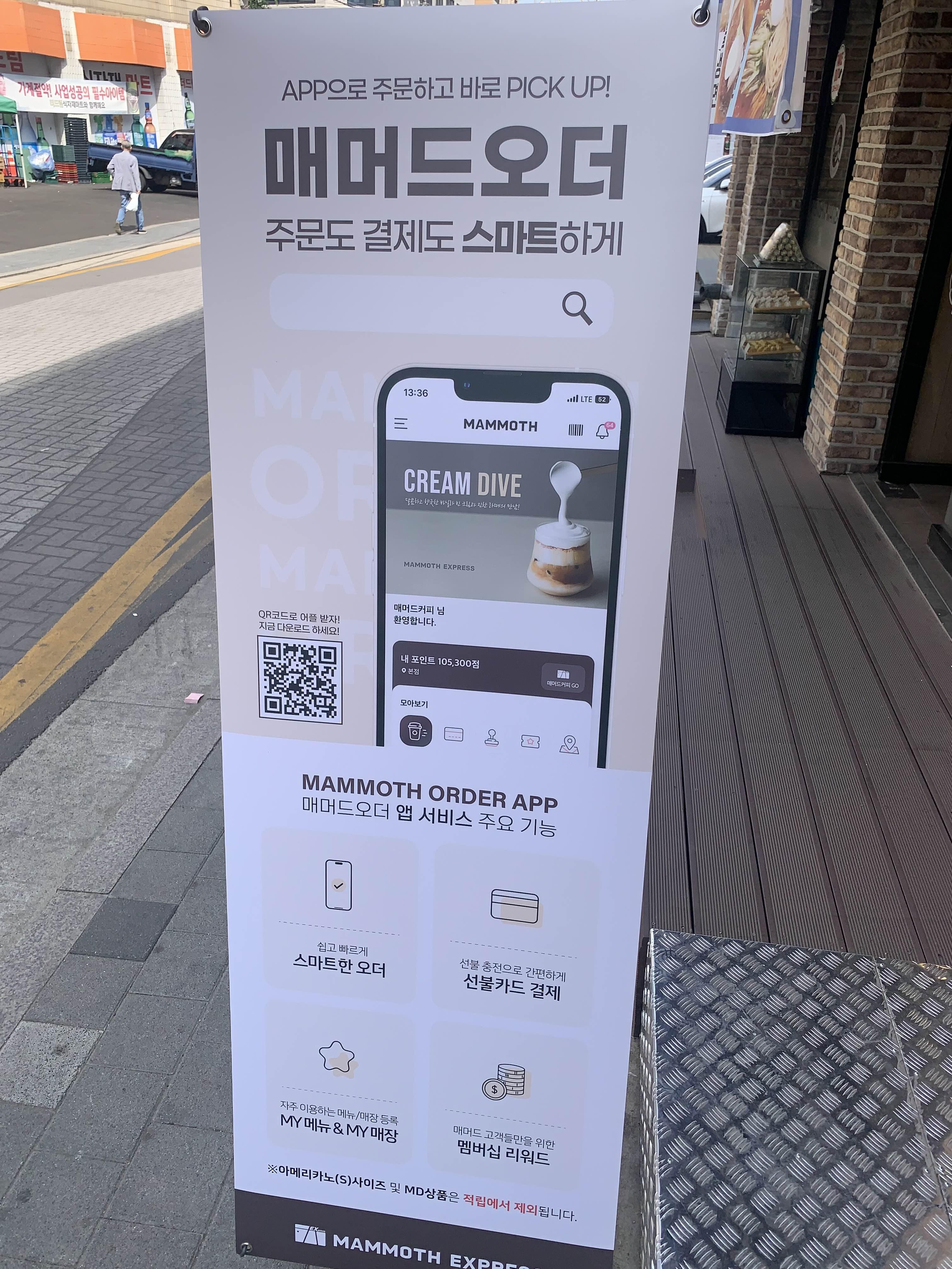 핸드폰으로 메머드 앱을 사용해서 주문도 가능하구요.