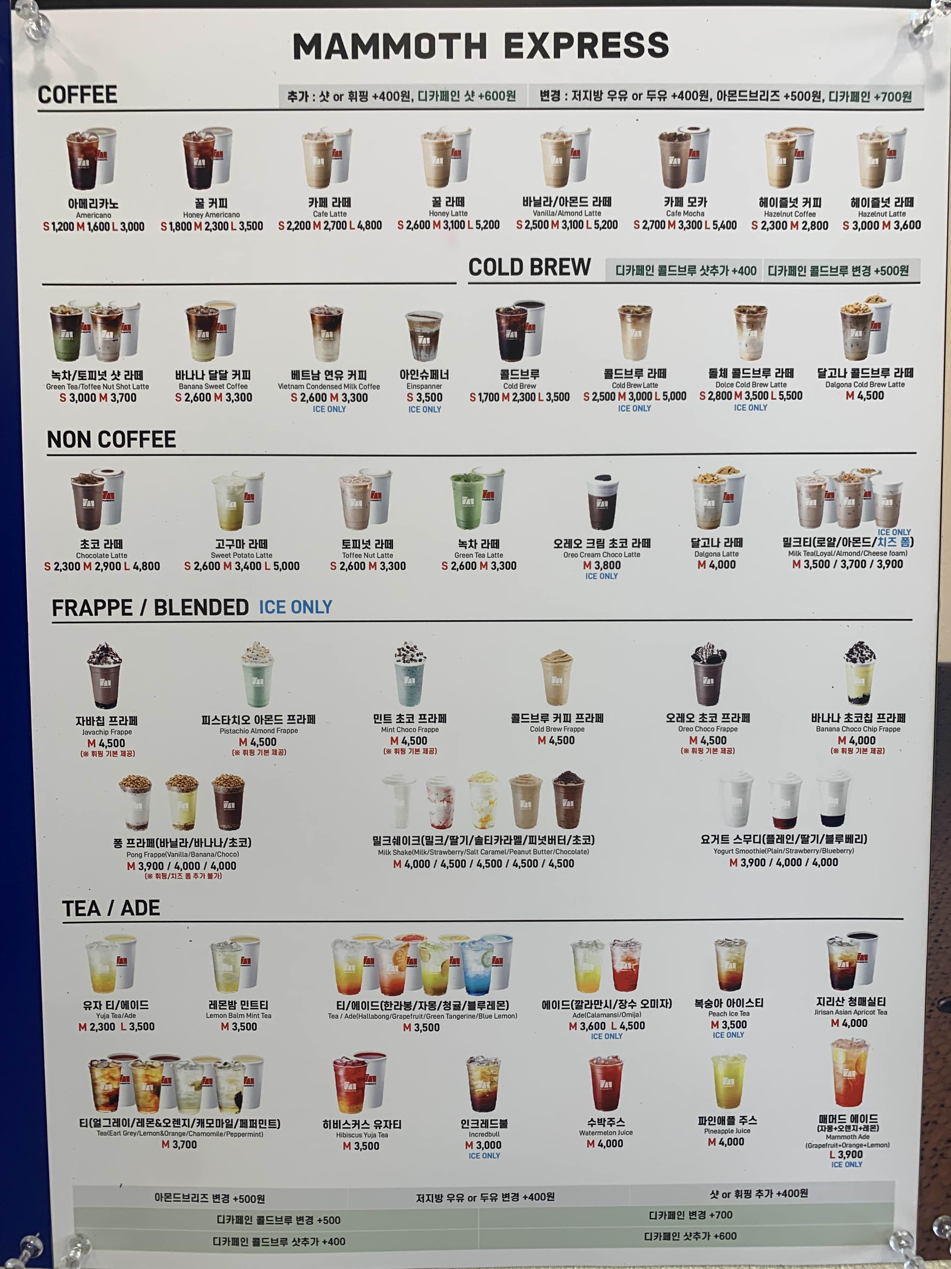 오늘은 메머드 커피 가격과 종류 메뉴는 어떤것들이 있는지 알아보겠습니다.