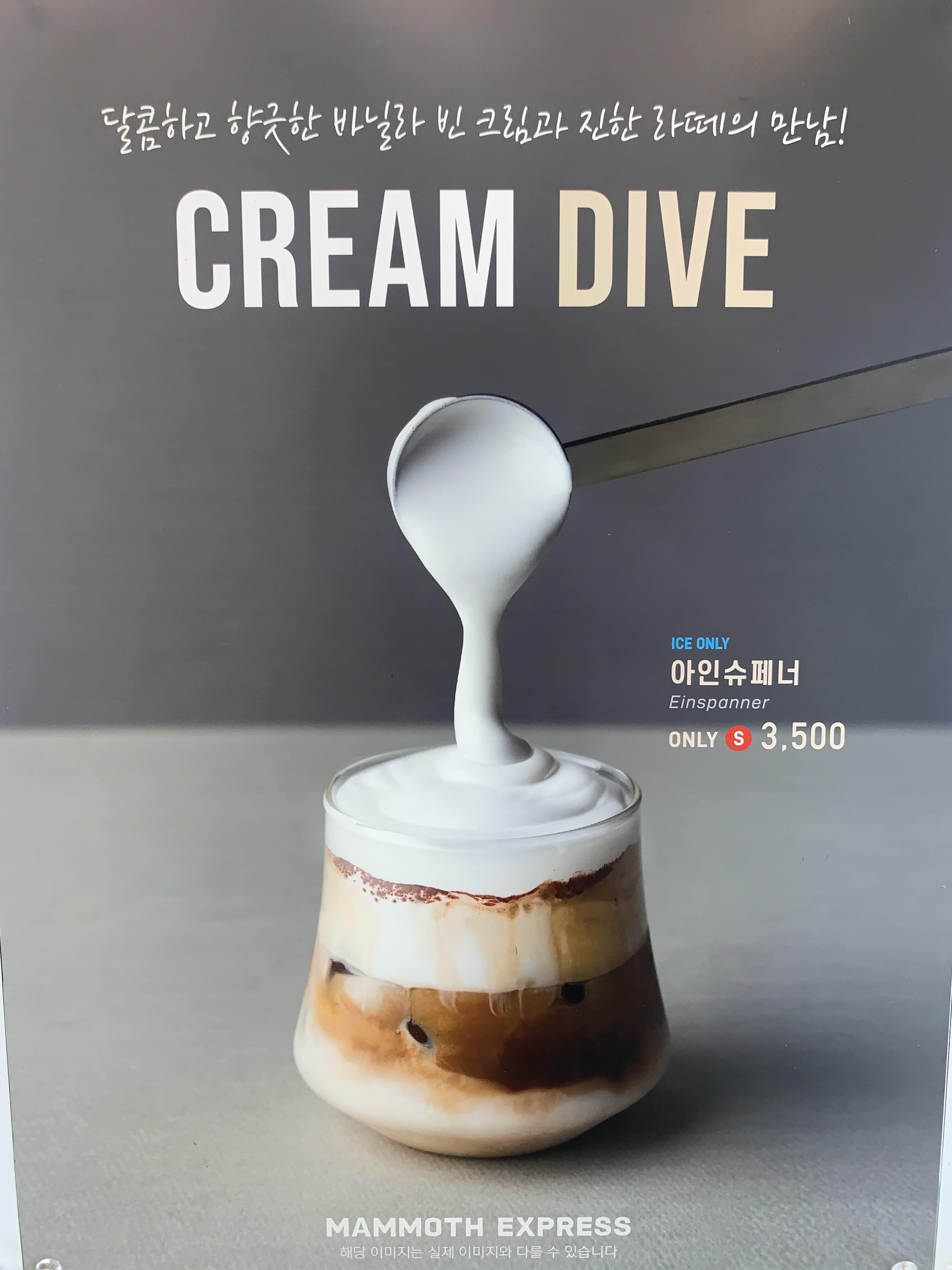 제가좋아하는 크림이 커피위에 올라간 아인슈페너가 3500원입니다. 아인슈페너 판매하는 브랜드 별로없는데 너무 좋네요.