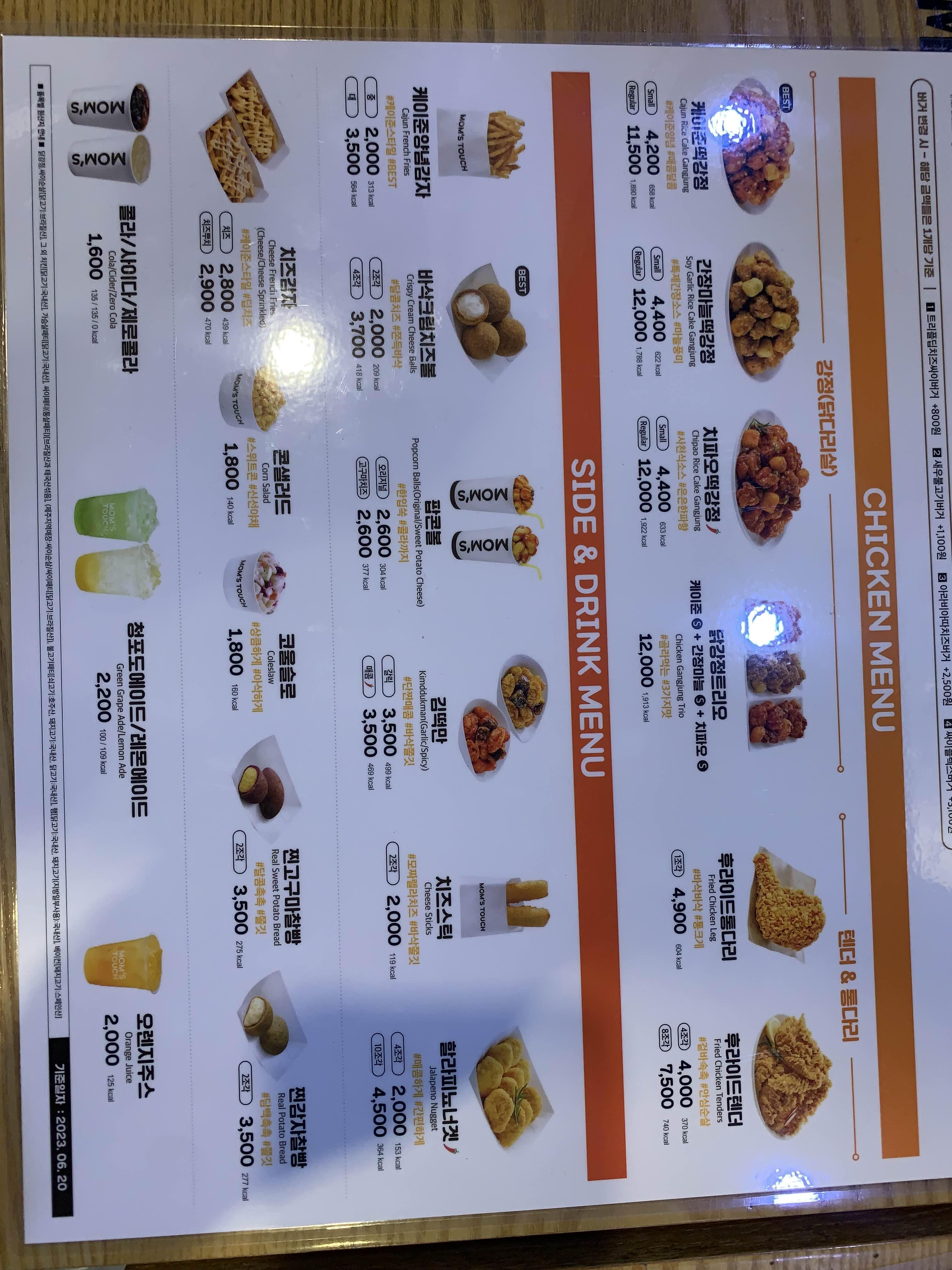 다음으로는 맘스터치 버거종류랑 가격표에요