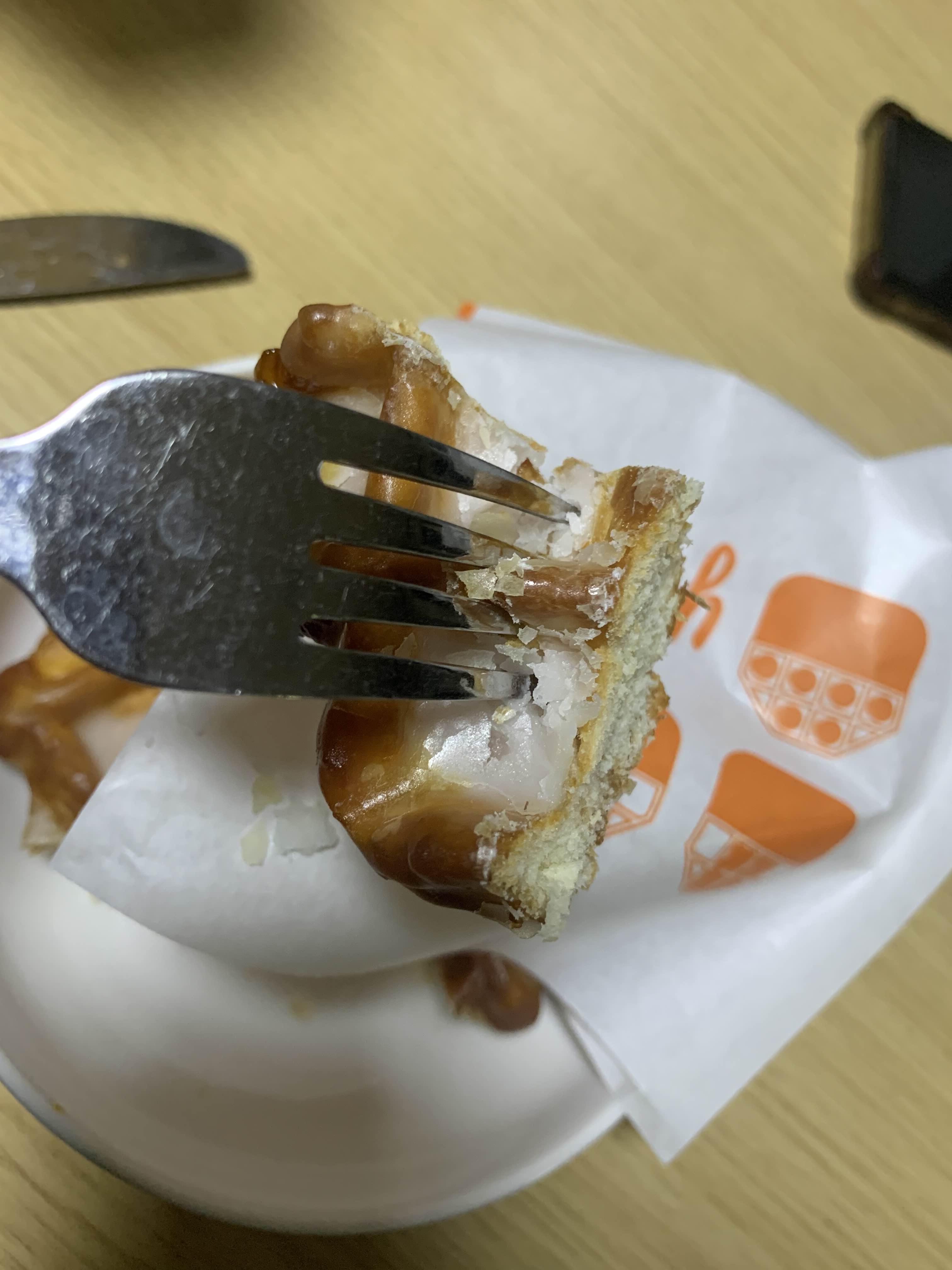 크로플 전체적으로 시럽같은게 묻어있네요.