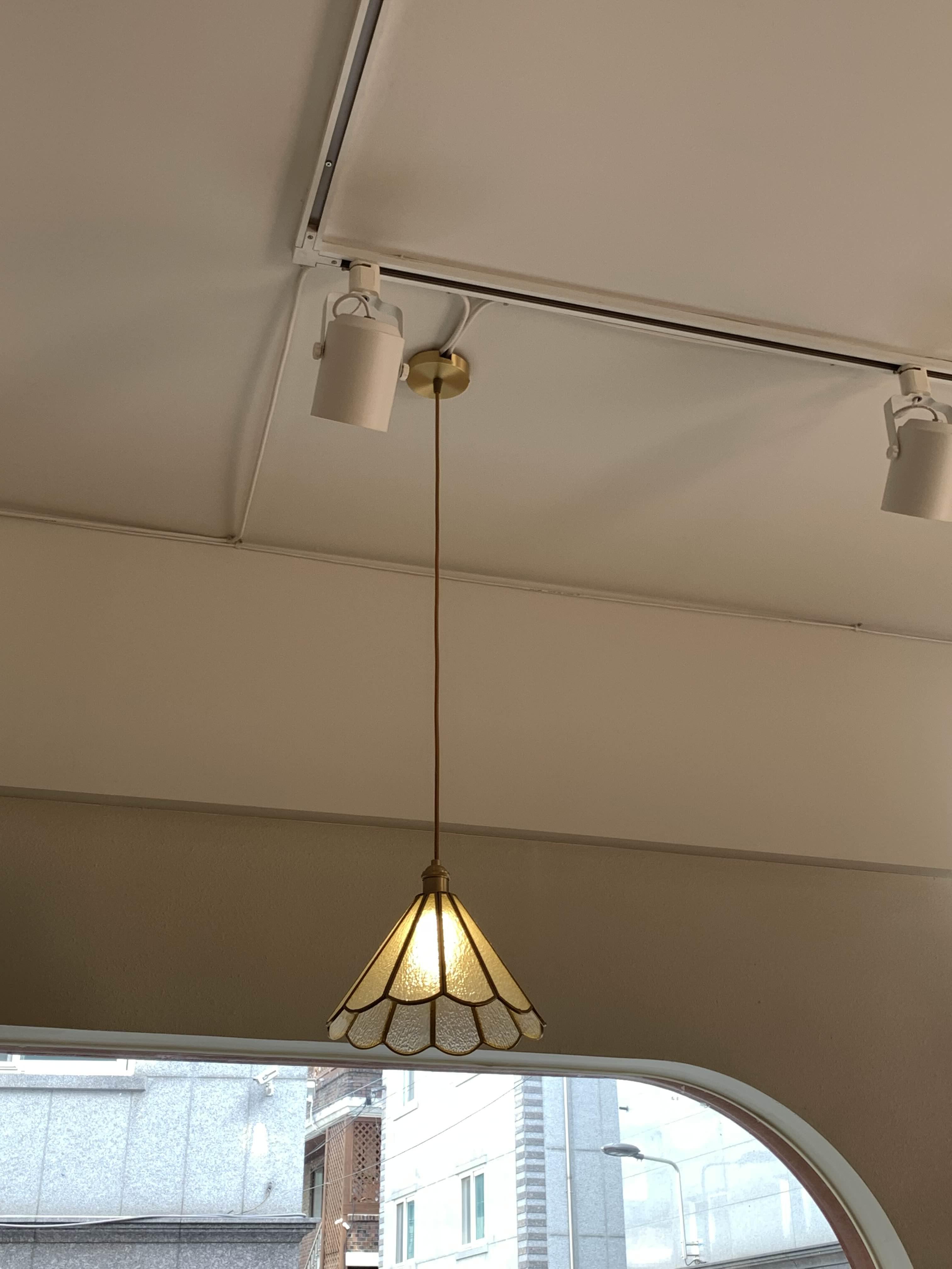 중간에 갓 조명이 인테리어의 감각을 느낄 수 있게 해 줍니다.