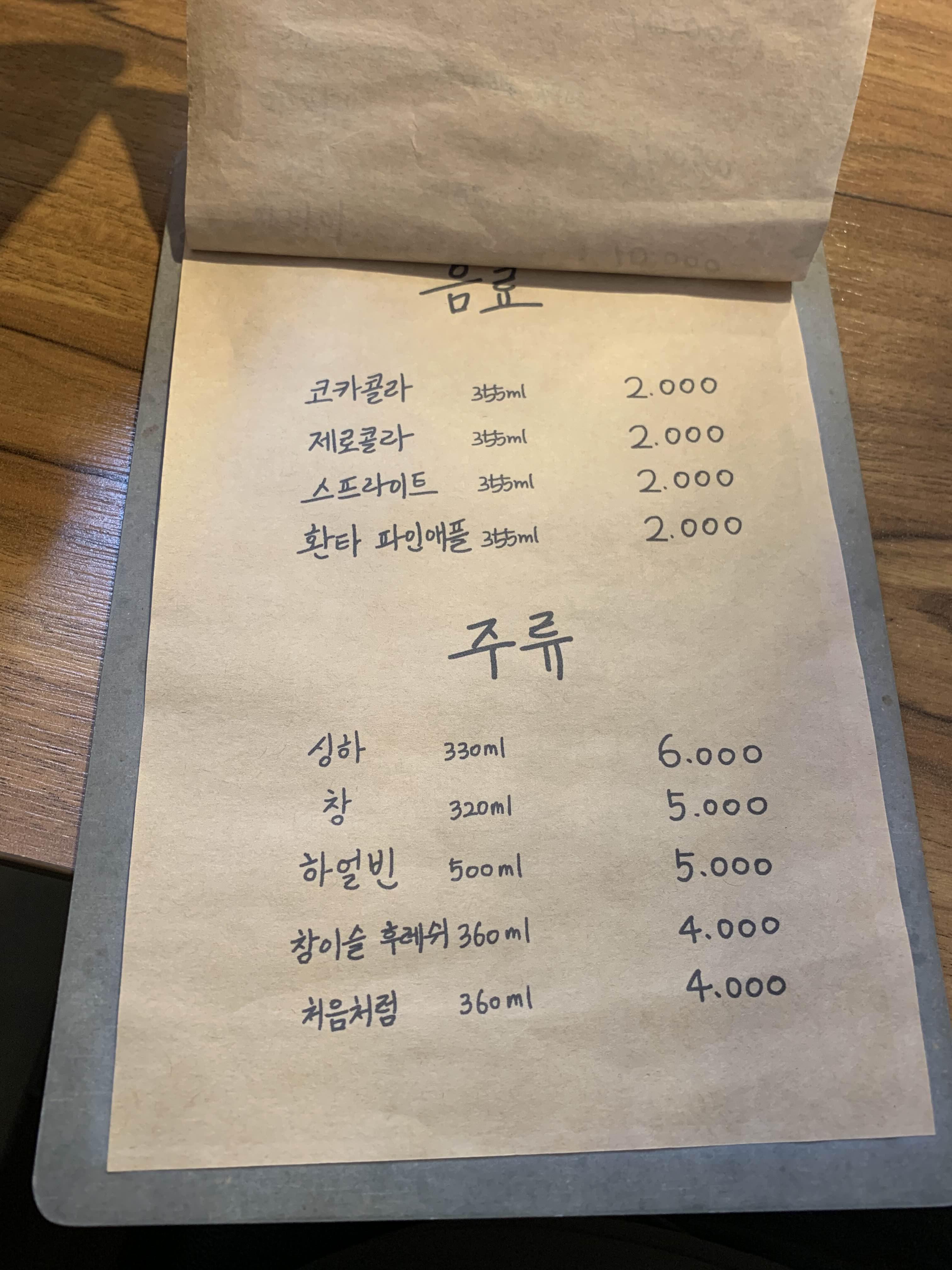 음료와 주류가격입니다. 참고하세요.